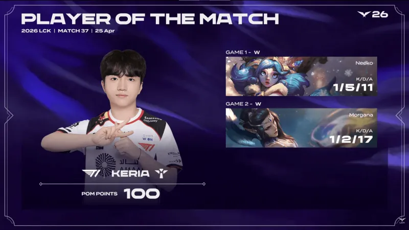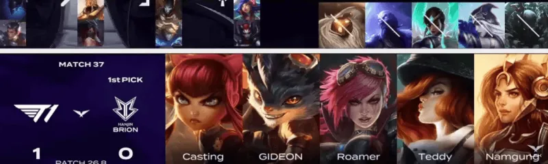 T1选用:Doran塞恩、Oner皇子、Faker冰鸟、Peyz女警、Keria莫甘娜