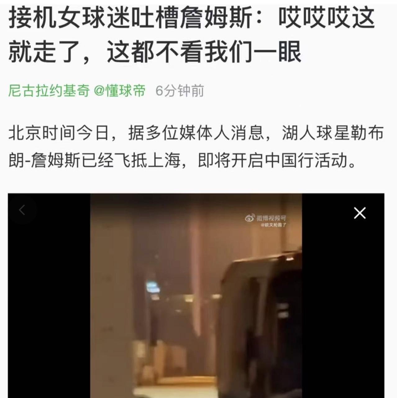 各位球迷都知道,最近詹姆斯已经低调抵达上海,接下来将会正式开启中国行的活动,和中国球迷进行交流。然而备受争议的是,在詹姆斯抵达中国上海之后,有些女球迷到现场接机詹姆斯,结果双方的第一次见面似乎却并不愉快。部分女球迷甚至在深夜接机之后,在社交平台发布视频吐槽自己遭到詹姆斯的无视,引发了不小的争议。