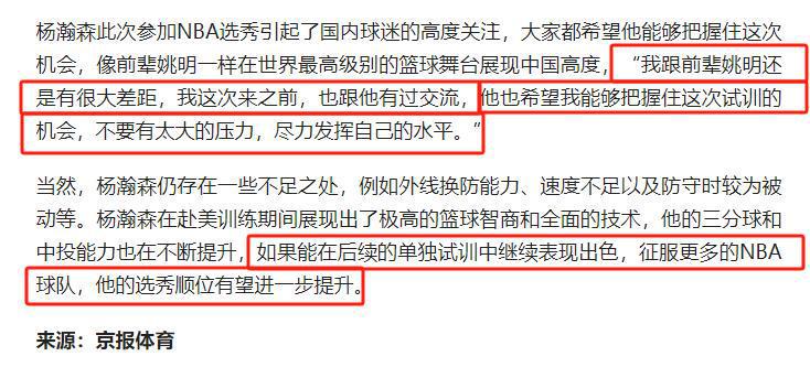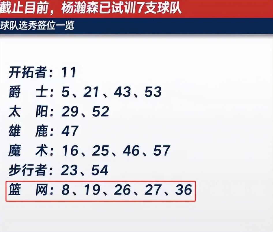 在坚持不懈的努力下,杨瀚森的选秀预估顺位不断的提升,从最初的末流一跃来到了20多位,这也与最新试训的篮网队的签位重合。