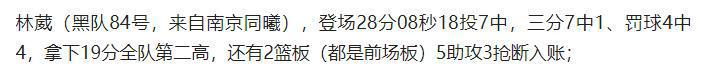 虽然在试训营当中,林葳的表现并不是十分出色,上场28分钟19分18投7中,三分7中12篮板5助攻的表现结束了比赛。