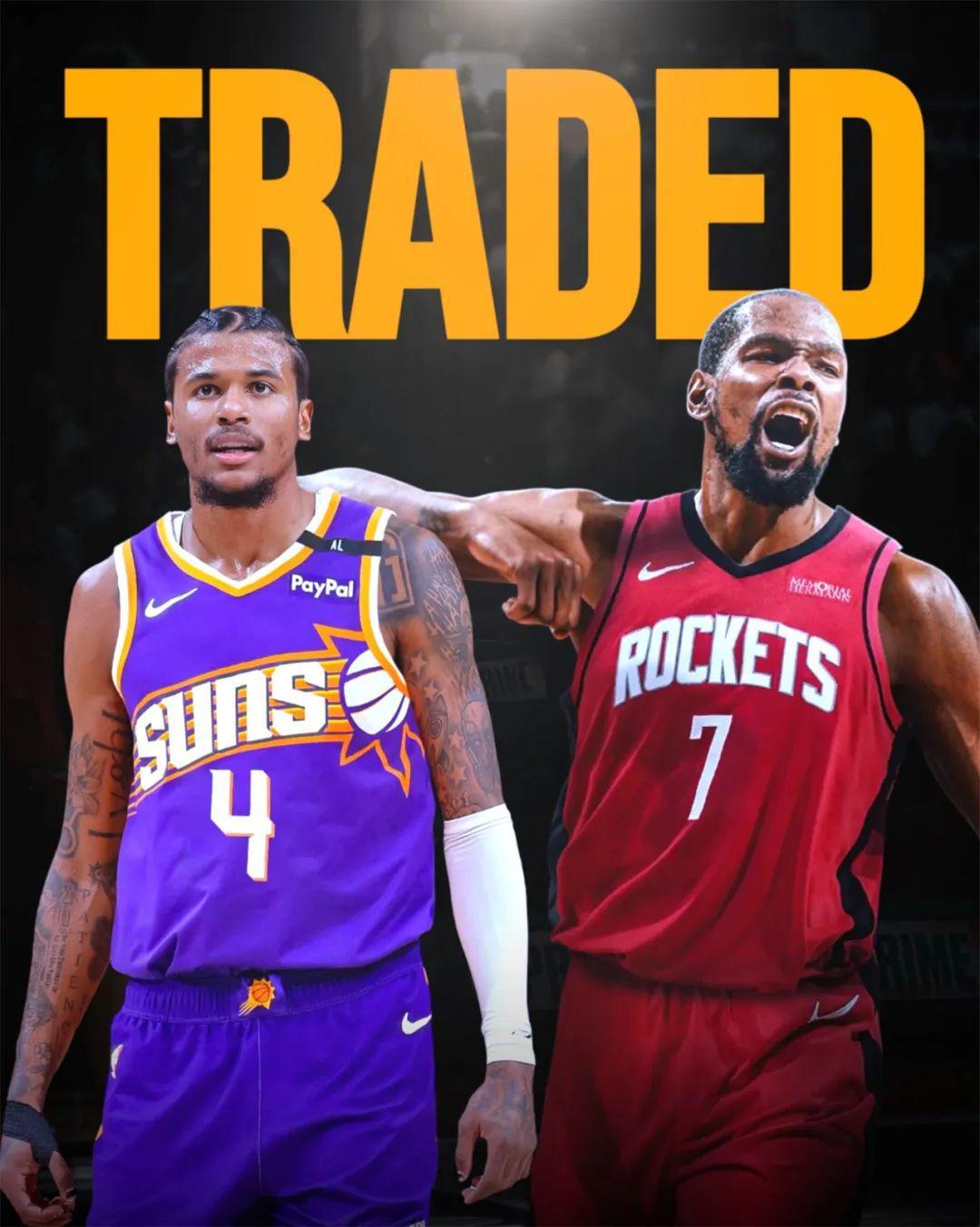 事情大概是这样,此前火箭、太阳、老鹰等七支球队达成了一笔史上规模最大交易,这笔交易中,太阳将杜兰特送到火箭,而火箭则送出了杰伦格林。